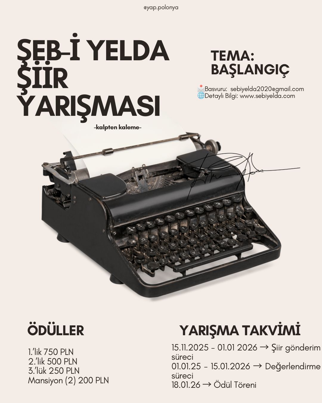 Şeb-i Yelda Dergisi tarafından düzenlenen bu özel yarışma, göç, aidiyet, kimlik arayışı, yabancılaşma ve insan ruhunun evrensel hallerini işleyen şiirlere odaklanıyor.